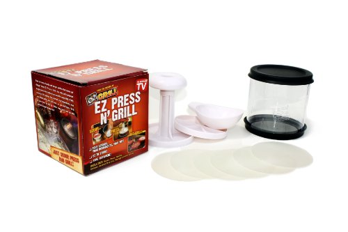 Use the EZ Press N’ Grill and you’ll be loading up your EZ Grill in no time. This great tool lets you form perfectly shaped burger patties without the mess and trouble of other methods. And get this: because the press consists of a canister with a fitted lid on both ends, it’s also perfect for storing patties until you’re ready to fire up the grill. When filled, the EZ Press N’ Grill holds six quarter-pound burger patties, and is perfect for refrigerator or cooler storage until ready for use. With both lids removed, you can use the press to push out exactly the number of patties you need and then just reseal. All the accessories fit neatly inside the press, so everything stays organized once the grill cools down. Made from FDA-approved materials. List Price : $15.99Our Price : $9.06
